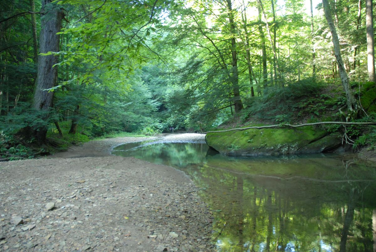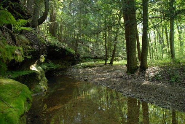 Located just south of Ash Cave, Bison Hollow Preserve contains spectacular Hocking Hills geology, including a deep gorge, waterfalls, high sandstone bluffs, caves, mature older forests, hemlock groves, and a high-quality stream tributary of Queer Creek. The preserve is part of AOA’s Hocking Hills Conservation Initiative that has conserved nearly 100 properties and 6,500 acres of natural features, landscapes, habitats, heritage areas and water quality in this special Ohio region.