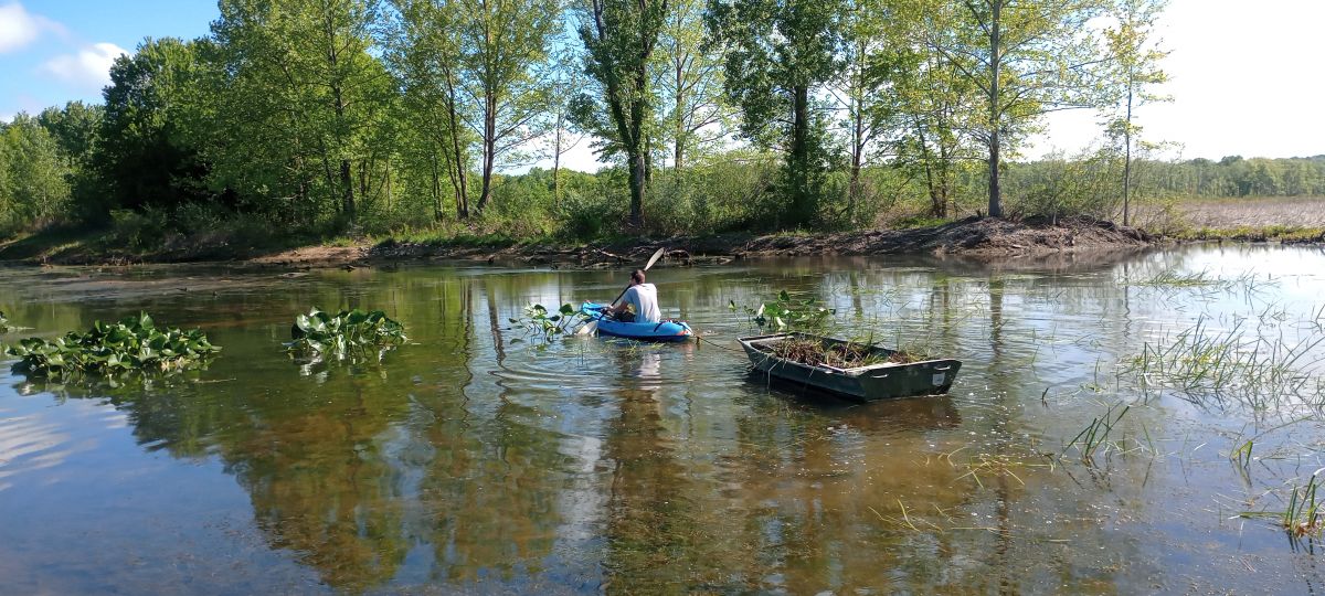 Wetland Restoration. AOA staff and local contractors working for AOA have performed major stewardship work on the Preserve during the years 2021 to 2025. This work has included the design of a wetland restoration project by an engineering firm and construction by a civil contractor. The project consisted of hundreds of cubic yards of fill removal from the former Kiser property, grading and drainage improvements, seeding and erosion control fabric placement. AOA staff provided debris removal, invasives removal and tree and aquatic vegetation planting. The goal of this project was the restoration of original plant communities and wetlands in this part of the Cackley Preserve.