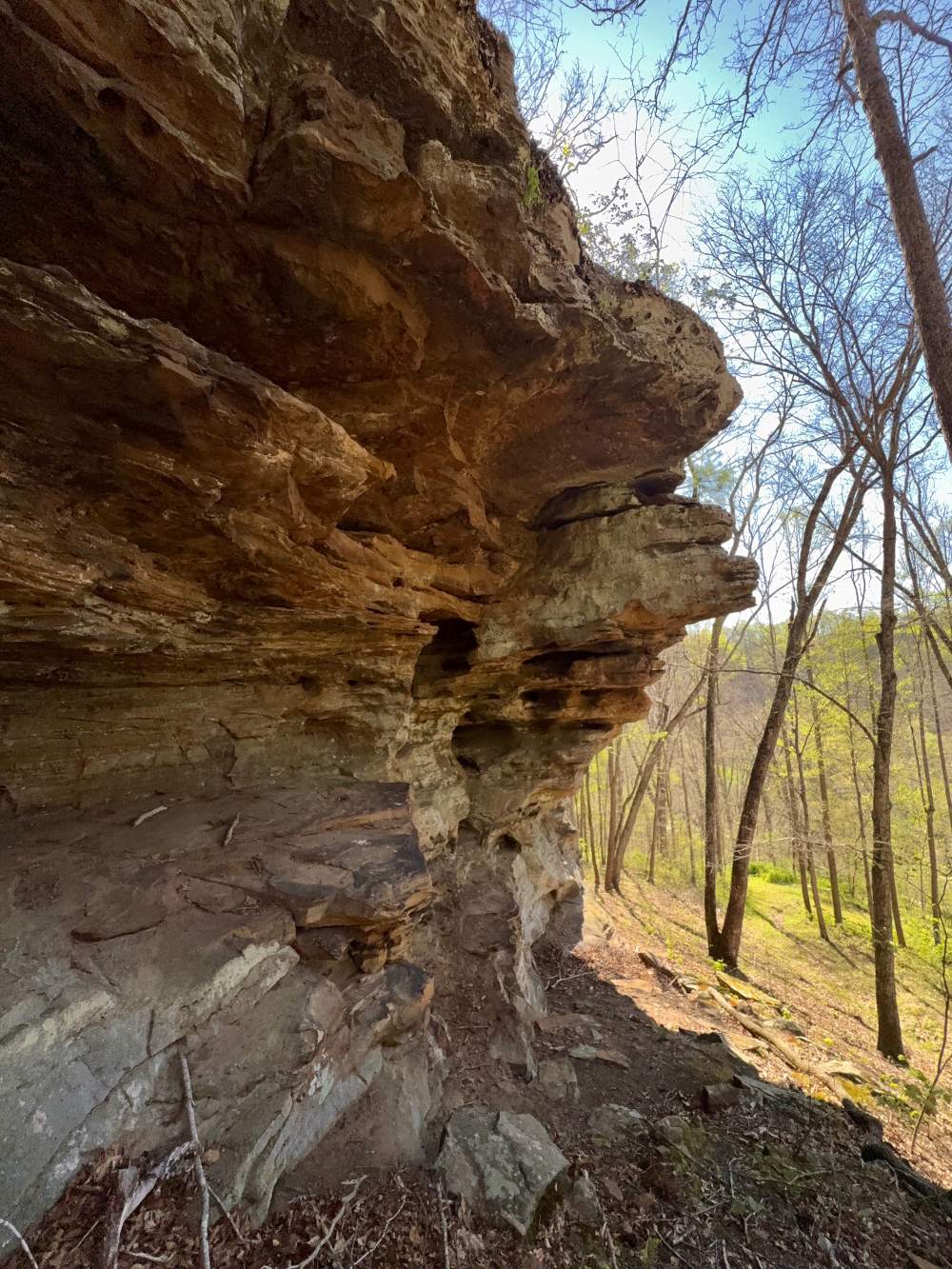 111-acres of older growth hardwood forest with large stands of hemlock, high steep bluffs, rock outcrops, slough rocks, and shelter caves