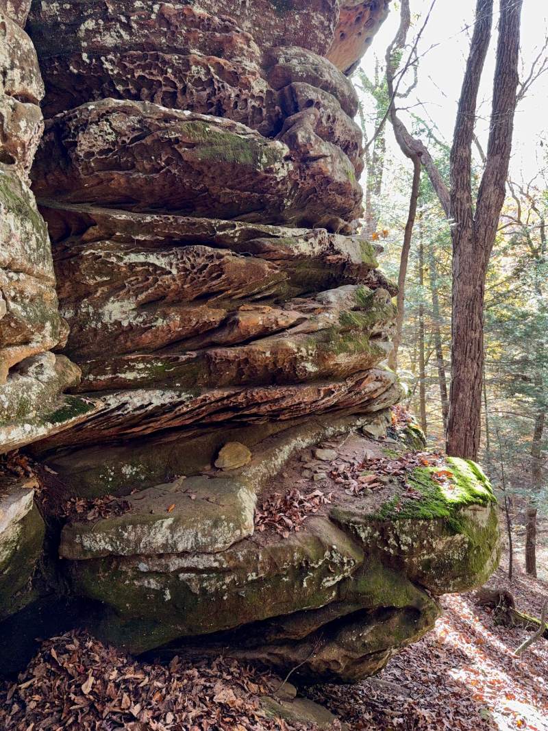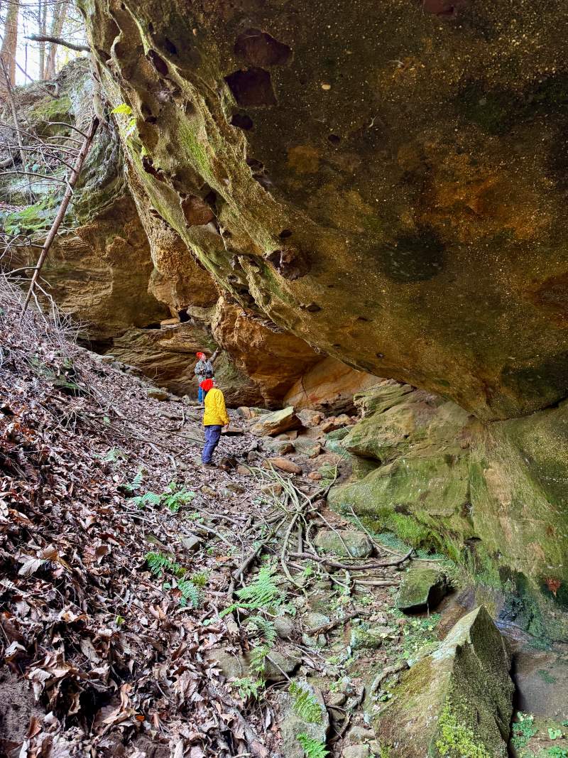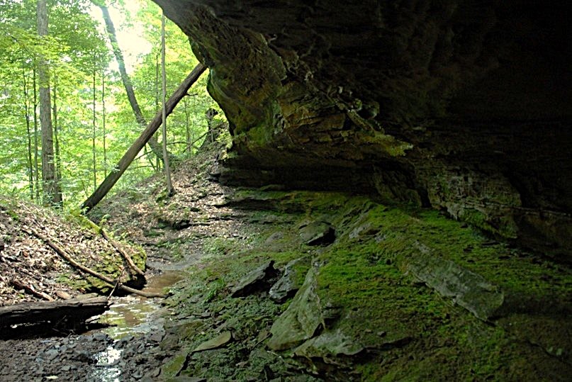 The preserve includes some outstanding geological features including sandstone bluffs up to 100 feet high that are parallel to a central stream gorge. These cliffs include habitat ledges that provide unique habitats for plants and animals and several small waterfalls.